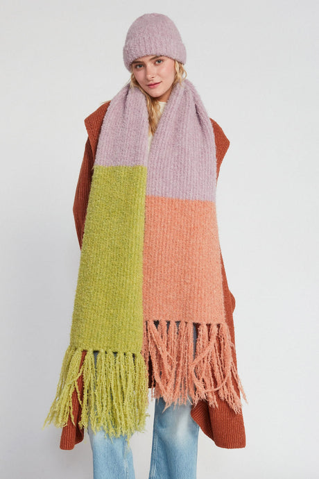 Fuzzy Color Block Scarf