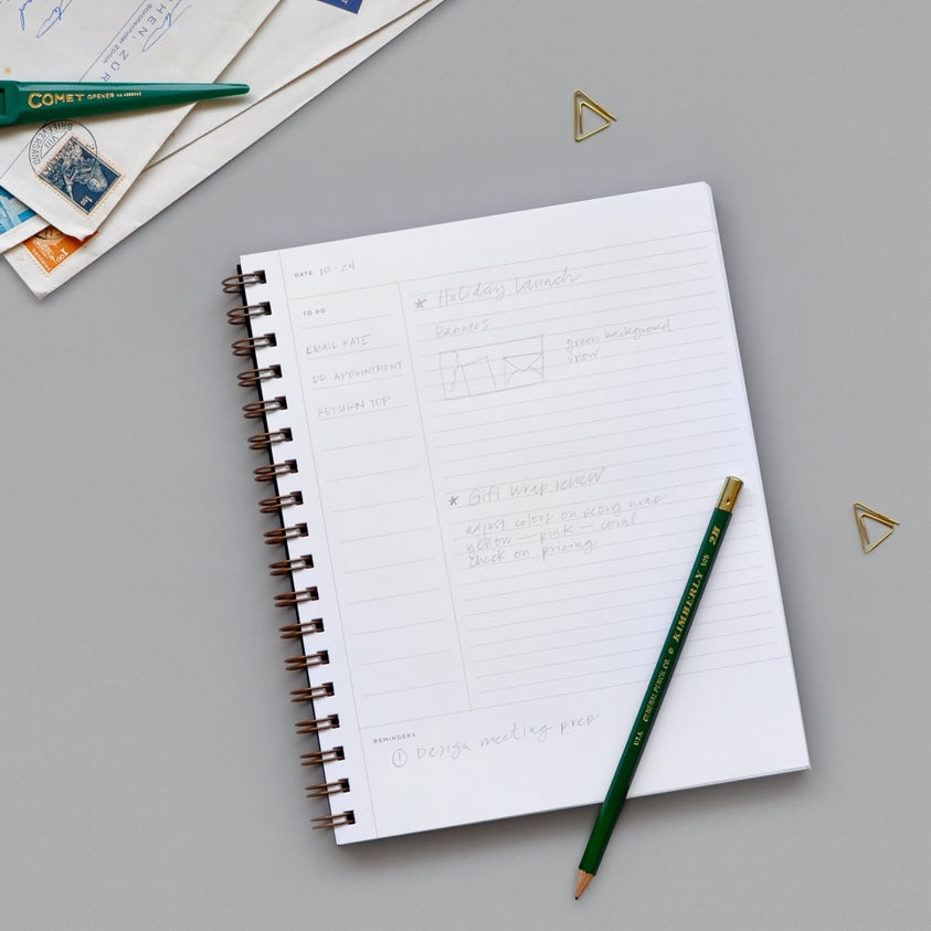Smitten on Paper’s new Workbook is just the notebook you need for dynamic note taking. Take cues from the Cornell notes method of study, this simplified version has a large space for notes and writing, a to-do list on the left side of the page, and space for reminders or top priorities on the bottom. Breaking down your notes and thoughts into these three key categories helps you retain information, makes it easy to go back and find important points and creates an organized way to move forward with your day. Let’s make 2026 your year!