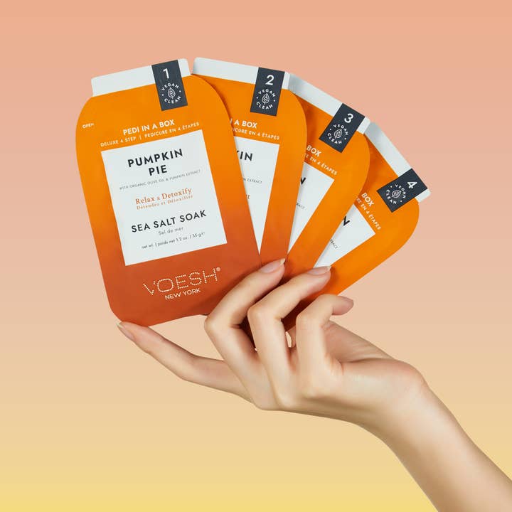 Treat your feet with our fall favorite, Pedi in a Box Deluxe 4 Step Pumpkin Pie. This limited edition pedicure kit includes a sea salt soak, sugar scrub, mud masque, and massage butter. Enriched with natural pumpkin extract to improve skin’s texture, this pedicure kit leaves feet feeling silky soft and moisturized. The pumpkin pie scent makes this pedi the perfect addition to your fall service menu.