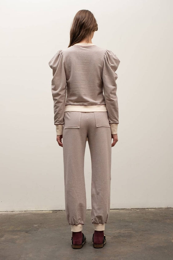 Restocked! Why not be the best dressed for dreamtime in this striped loungewear set. The long-sleeve top and coordinating pants are fabulously comfortable and chic. Even better, you can wear them out and about, too! Cultivated Crew Tip: Wear the cute puff shoulder top with your favorite denim for an easy yet elevated outfit.