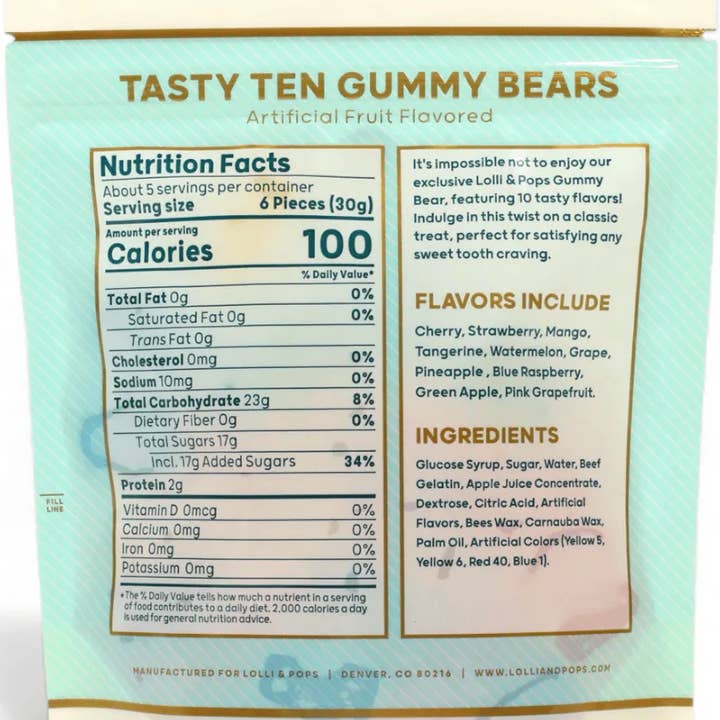 Enjoy a colorful assortment of fruity favorites with the Tasty Ten Gummy Bears, a vibrant mix of ten delicious flavors in one irresistible collection. Each gummy delivers juicy flavor with a soft, satisfying chew.